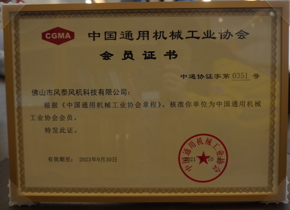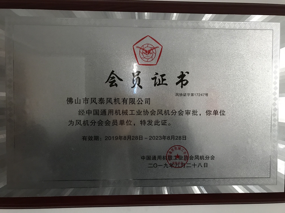 中國(guó)通用機(jī)械工會(huì)協(xié)會(huì)風(fēng)機(jī)分會(huì)會(huì)員證書(shū)